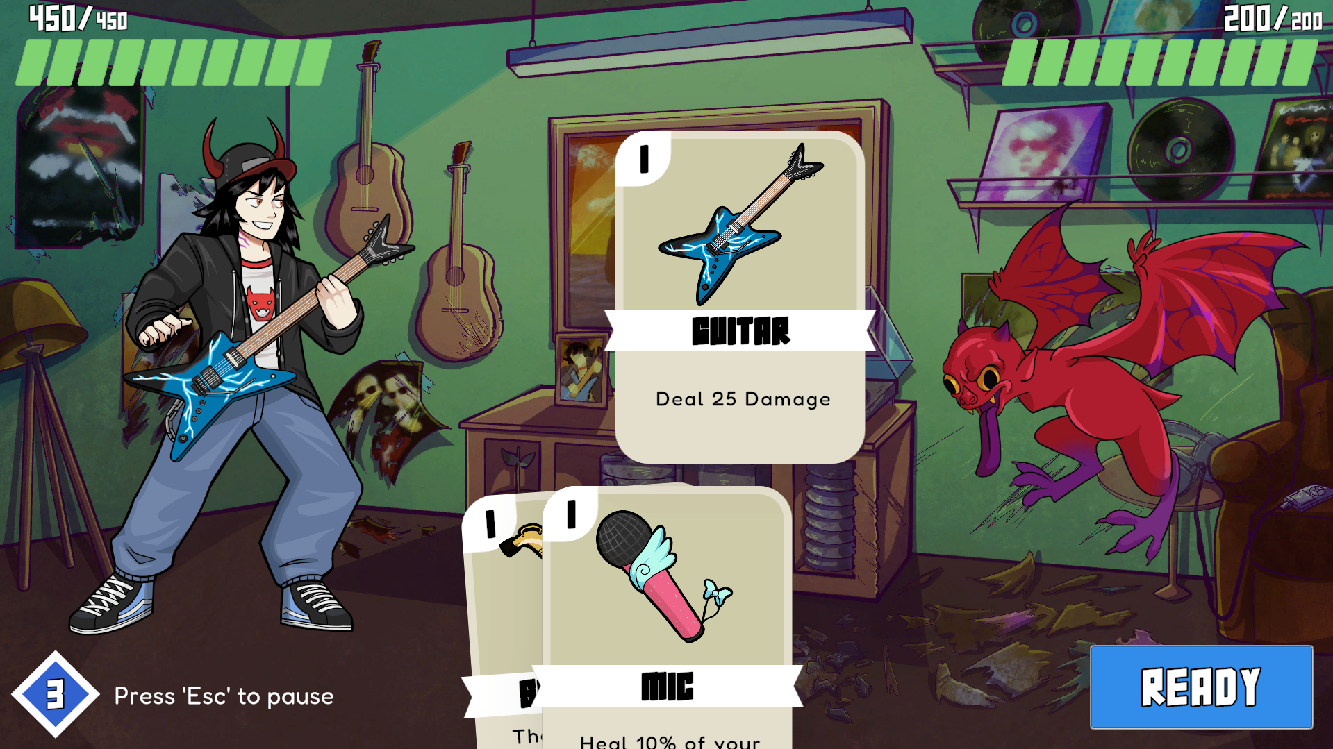 Fight demons with the power of music! You can acquire cards and defend yourself from their powerful attacks.