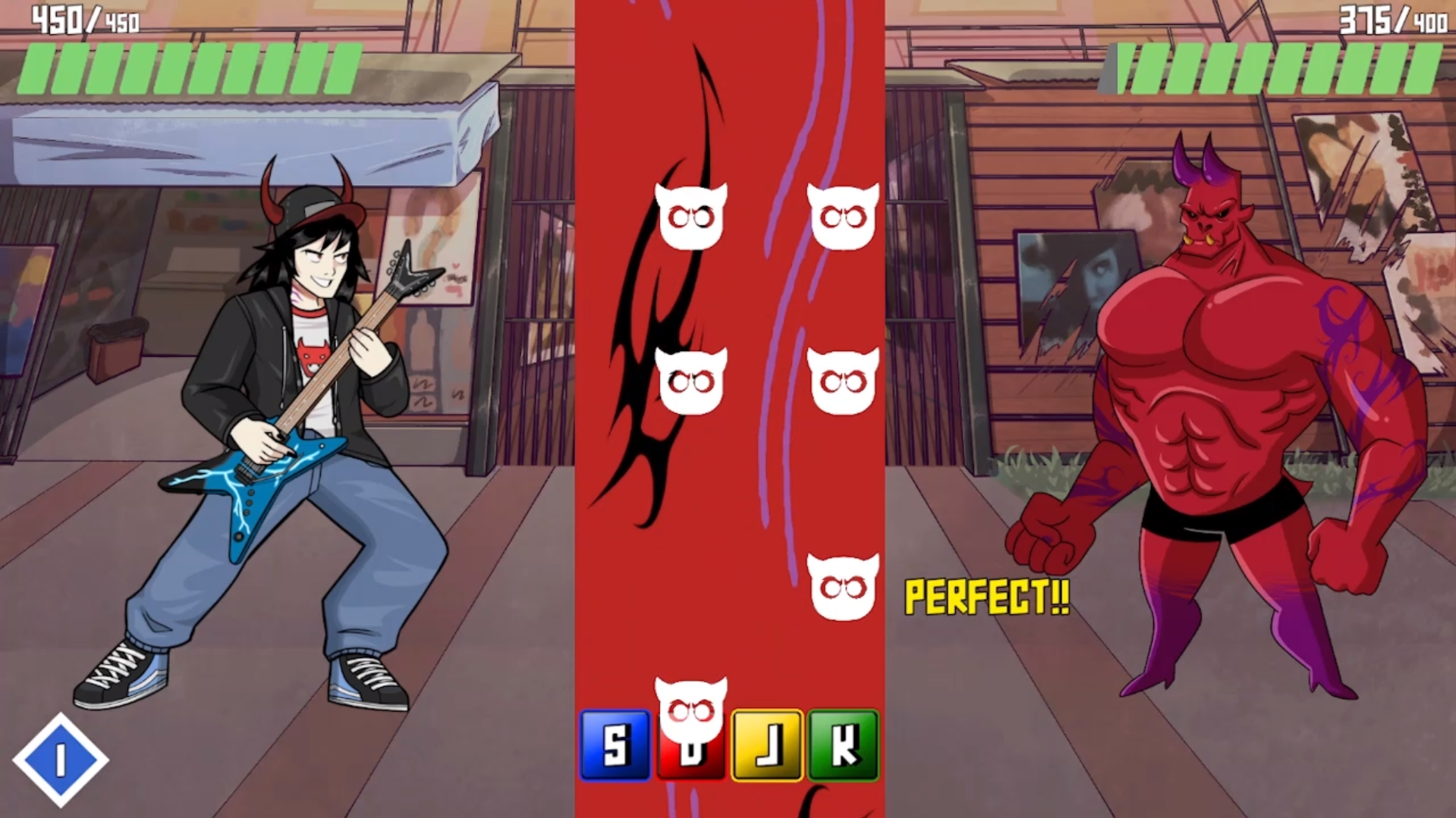 Gran juego se hicieron, es un juego Bastante único combinando el estilo de Guitar Hero y roguelite por turnos, es una buena premisa jaja. Me encanta el arte que tiene, ya que, es muy colorido y no es molesto a la vista. Tiene diferentes referencias que si te fijas bien, son fáciles de reconocer.